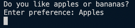 print("Do you like apples or bananas?") #BR#